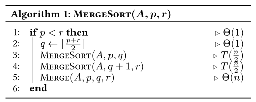 , then , and the algorithm terminates in constant time “The time for MergeSort to sort